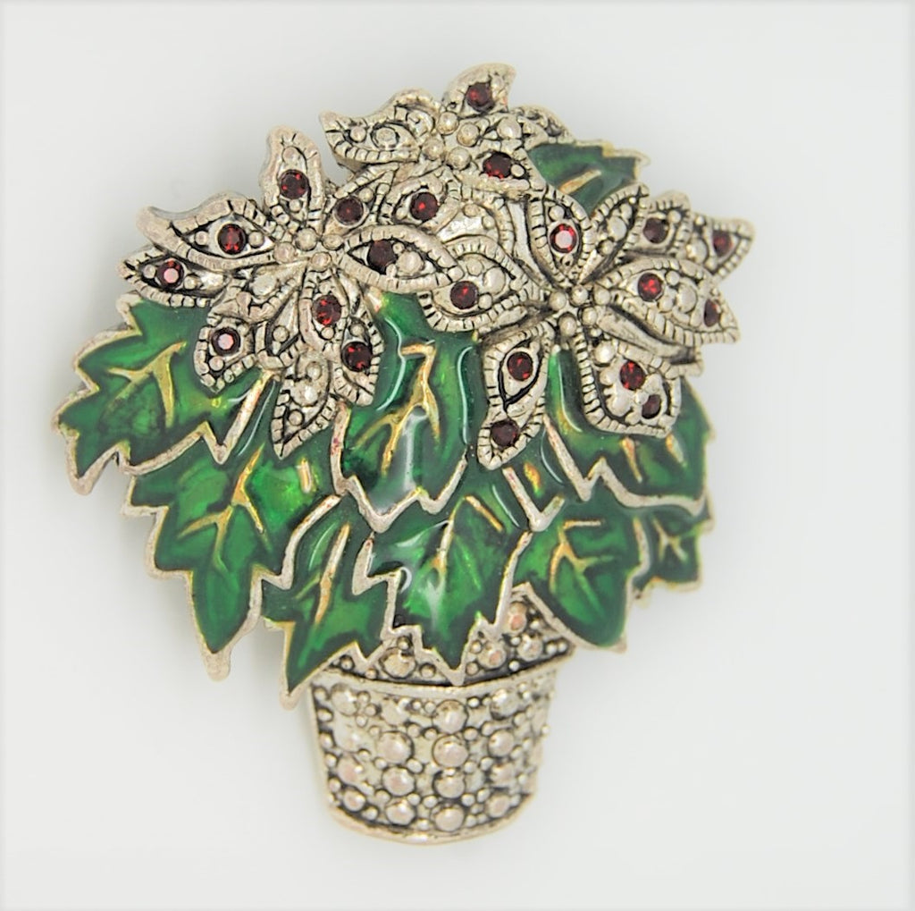 KC Cole Holly Bush Christmas Tree Vintage Figural Costume Brooch.  Absolutely beautiful and substantial Holiday brooch measuring just under 2 inches tall.The pin back is straight and strong, the clasp locks securely.